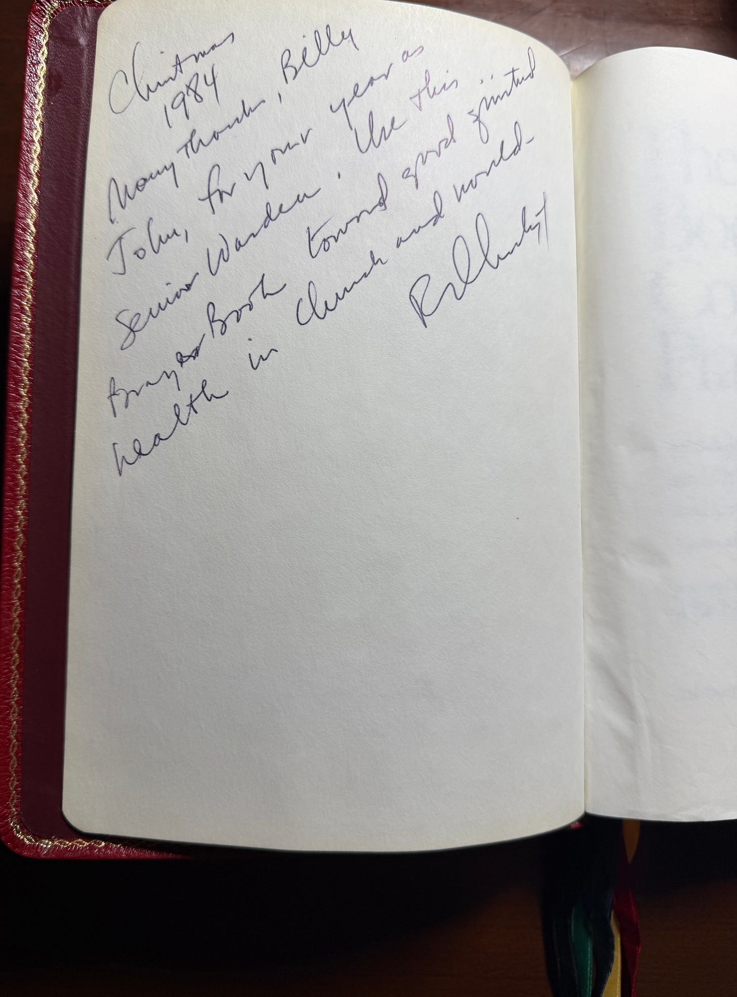 Many thanks, Billy John, for your year as Senior Warden. Use this Prayer Book toward good spiritual health in Church and world–
