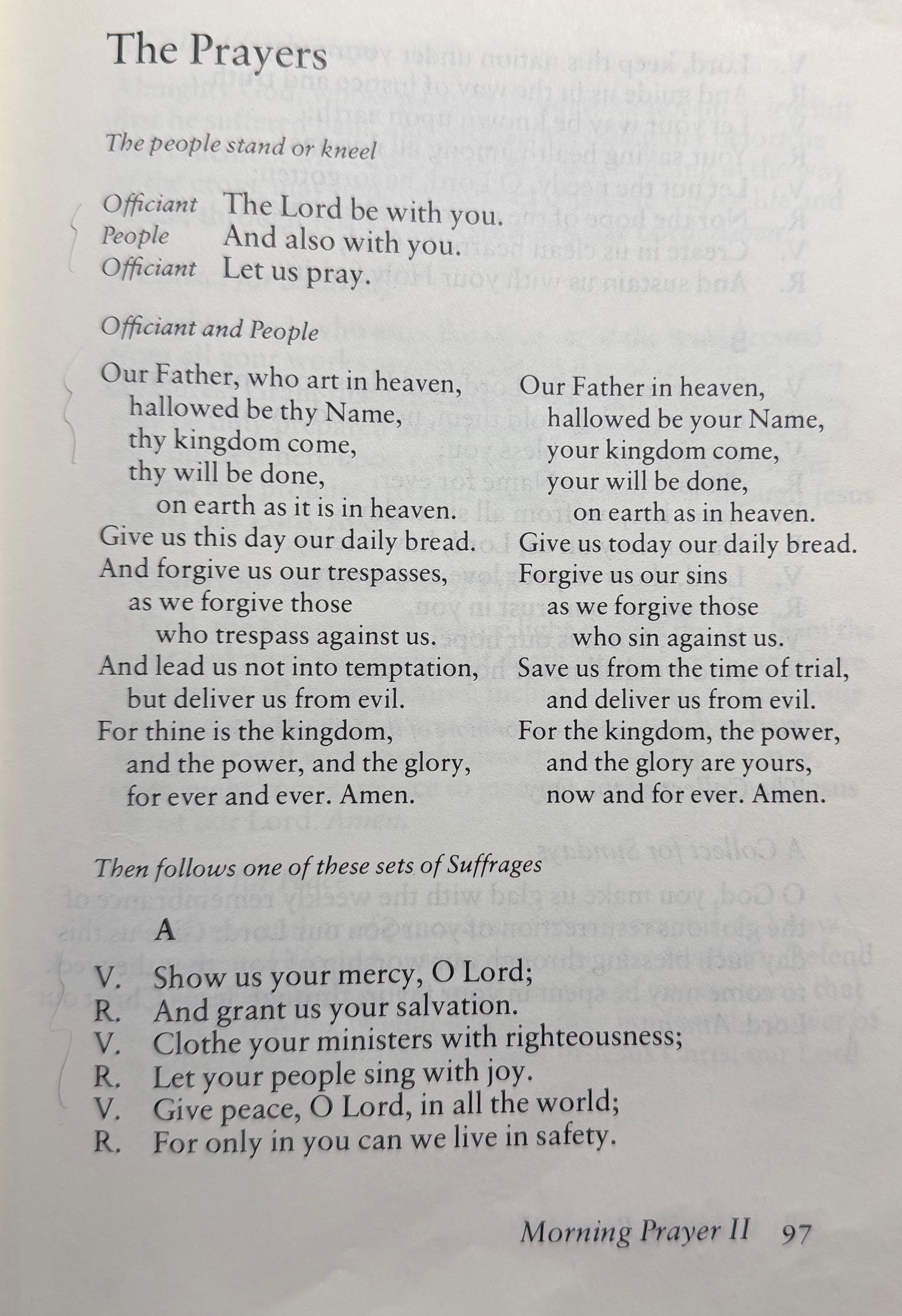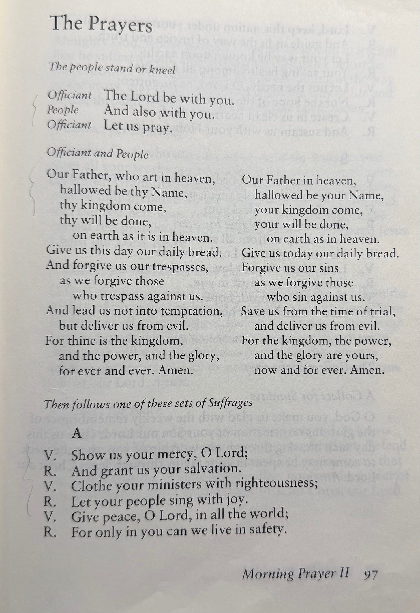 Billy John had his favorites. He liked the Jubilate (Ps. 100). My go-to is the Venite (Psalm 95:1-7). He liked Canticle 13, “A Song of Praise” (Benedictus es, Domine), a lovely choice. He preferred, as I do, the traditional version of the Lord’s prayer.